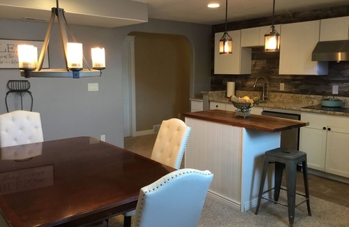 is equipped with a new master king suite with double sinks and shower, two other spacious queen bed bedrooms with TVs, a guest bathroom, your own laundry room and a cozy living room make a perfect family atmosphere. Features a fully equipped upgraded kitchen, island, and dining combo, Less than 10 min to Hill AFB north Gate and 15 minutes to downtown historic Ogden! Perfect for military trasitions, College graduations, family reunions, traveling urses, traveling sub contract workers, or ski enthusiasts.