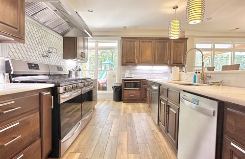 As a guest, you'll be delighted by the array of amenities that cater to your every need. Dive into the sparkling outdoor pool (seasonal) soak in the rejuvenating hot tub, eat s'mores by the campfire at the beach and watch AMAZING sunsets. Enjoy the convenience of a fully equipped kitchen, glorious coffee station, and outdoor kitchen with a propane grill (propane provided). Eat in the spacious dining area, on the huge back patio with tons of patio furniture & dining tables or on the oversized dock.
