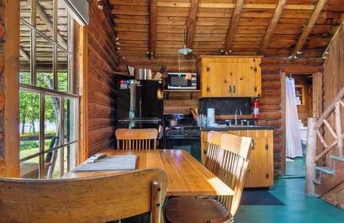 FAQs: This property is available May-October and has it's own private beach in front of the cabins as well as access to a shared dock next to the private waterfront. Guests have access to paddleboards. Four out of the five bedrooms have A/C. A Solo Stove is available to enjoy a fire near the beach.