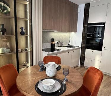 This apartment offers air-conditioned accommodations with a balcony. There's a sun terrace and guests can use free Wifi and free private parking. Luksusowy apartament z klimatyzacją i garażem podziemnym w centrum miasta features 1 bedroom, a fully equipped kitchen with a dishwasher and a fridge, a washing machine, and 1 bathroom with a hair dryer. A flat-screen TV is featured. The property offers city views. Warsaw Frederic Chopin Airport is 59 miles away.