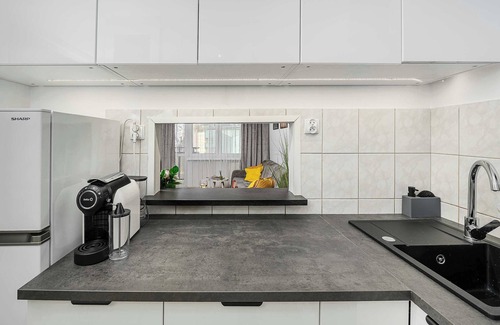 This modern apartment in Warsaw offers the perfect combination of style and functionality. In this apartment, a spacious bedroom blends seamlessly with a cozy living room, creating an inviting and comfortable atmosphere. The kitchen is equipped with everything you need. This apartment is designed for modern living, providing comfort and practicality in a busy urban environment. We look forward to seeing you in our apartment!