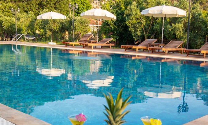 Aparthotel in Fethiye with a seasonal outdoor pool and a poolside bar