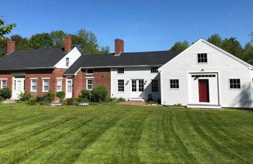 Enjoy spectacular sunsets from this traditional 1840's rambling Maine farmhouse. Located in the Lakes Region, the farm is perfect for a few people or for a large gathering (family reunion/vacation). Take long walks or ski the acres of fields and woods. Enjoy as a quiet, peaceful retreat for writing, painting, and nature (don't miss the brilliant display of stars at night). Sunny, open dining area; warm, cozy kitchen, 3 different living rooms providing plenty of space for groups. There are many ways to enjoy winter - Walking and skiing trails on the property. Sledding on farm fields. Tracked nordic skiing at Pineland Farms 22 minutes away. Alpine skiing at Pleasant Mountain (45 minutes), Sunday River (1hr 10 minutes) and North Conway/Jackson NH area (1-1.5hr). Ice skating on local ponds/lakes. Located within 1 mile to the town beach on Crescent Lake, the owners provide a canoe with the paddles, lifejackets, cushions and a pad and roof straps for transport to the lake. Privacy abounds here!