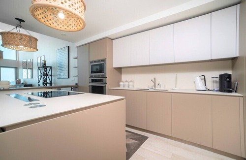 This beachfront haven comprises of 3 bedrooms plus den, 3 bathrooms, a spacious private terrace, onsite gym, roof top terrace with bbq grill and yoga area. Sleeps up to 8 guests in total.