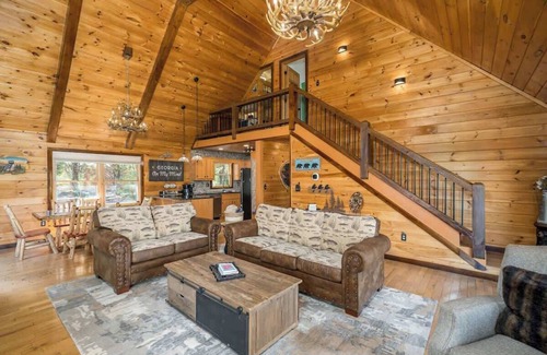Step into a welcoming haven with ample space for everyone to unwind. This cabin boasts: