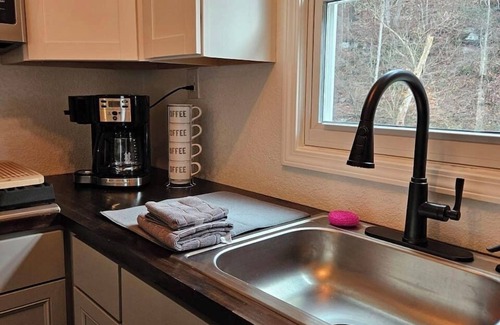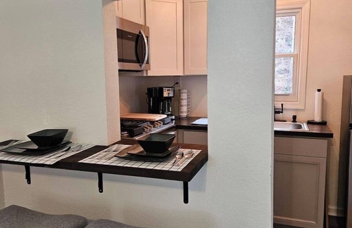 The kitchen is furnished with all new kitchenware, including a hot/cold brew Keurig , pods provided. and a kitchen table