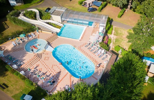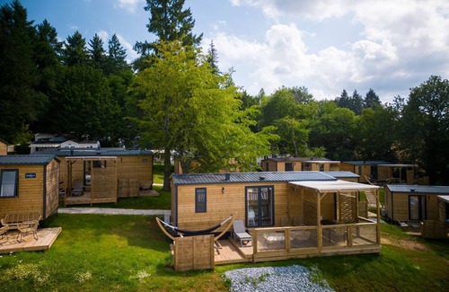 Payrac 23 km from Rocamadour: Resort "Camping Sunélia Le Séquoia". In the resort, 1 km from the centre, in a quiet position. For shared use: well-kept garden plants and trees, 4 swimming pools, indoor pool heated (seasonal availability: 01.May. - 15.Sep. pool opening hours: 10:00-20:00). Children's pool, slide, children's playground (slide, swing). In the house: restaurant, bar, sauna (extra). Massage (extra). Hot tub (extra). Shopping facilities. Bus stop "Rouffillac Bourg" 15 km. Nearby attractions: Rocamadour, Cahors, Sarlat, Loubressac, Grotte de Lascaux, Grottes de Pech Merle. Well-known lakes can easily be reached: Gouffre de Saint Sauveur. Hiking paths: Randonnées des fonds de la Baraunhie, Randonnées du Roc des Monges, Balades VTT - trottinettes électriques. Please note: entertainment in the season. Suitable for families, baby equipment on request (extra), childminding in the season. The photograph shows a typical example.