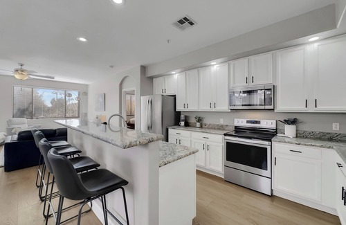 Step into tranquility with a luxurious Waterview 2-bedroom, 2-bath condo at The Bridges, perfectly designed for a 30-day getaway in Chandler. Blending modern comfort and sophisticated style, this condo is your ultimate retreat.
