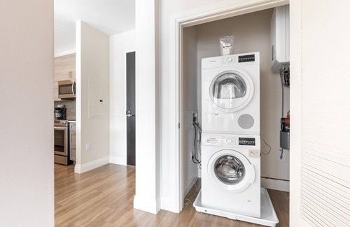 As with any Blueground apartment, you’ll find a thoughtfully designed space complete with beautiful furniture and a fully equipped kitchen in this two bedroom property. And, thanks to our superior quality mattresses, luxury linens, and towels, you can relax knowing you’ll always feel comfortably at home. When you’re ready for some fun, you can take in the Newton vibes or bring the entertainment to you with the premium wireless speaker or smart TV. This apartment also offers in-apartment laundry.