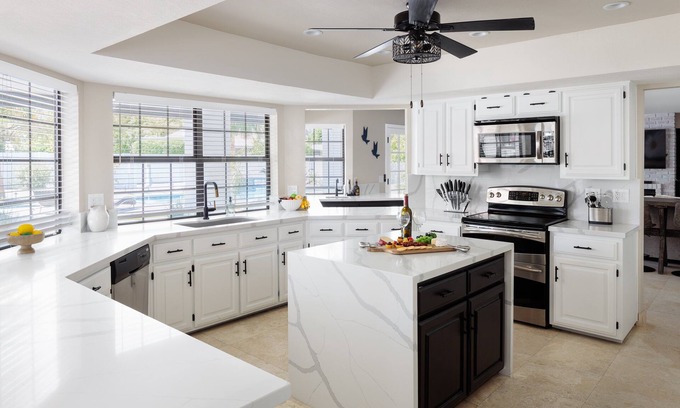 After you return, you can unwind by the outdoor pool or sip a drink on the balcony; you may also like the BBQ grill. As for the great indoors, you can come inside and enjoy the TV and pool table.