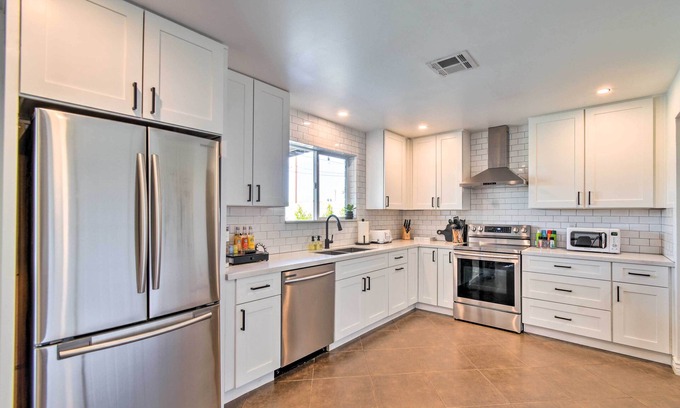Packed with amenities and plenty of private outdoor entertaining space, this bright Scottsdale vacation rental will surely provide you with a perfect home-away-from-home for making memories with your loved ones. This 4-bedroom, 2-bathroom home boasts a fully equipped kitchen with a stocked coffee bar, kid-friendly and dog-friendly amenities, and a private yard with games. Work on your golf swing at the TPC Scottsdale Champions Course or visit a Spring Training stadium. Your next getaway awaits!