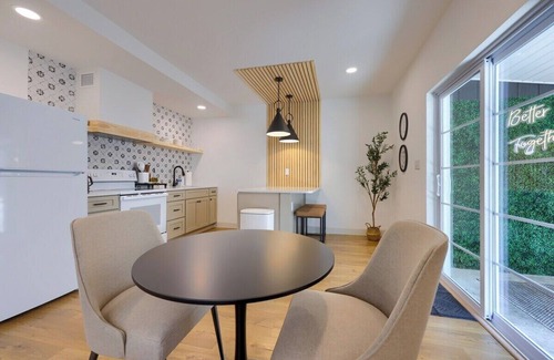 This is our guest house located at our home. We live in the house right next door! Guests have full access to the apartment and private patio area. We strategically designed the space to allow guests optimal privacy, however, we are always available and happy to say hi or help with anything you need throughout your stay!