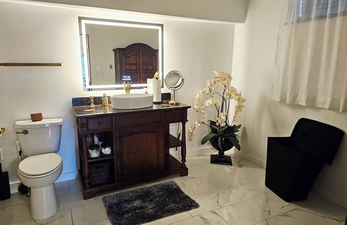 The studio itself is a spacious, stylish & comfy apartment with a huge, bright, luxurious bathroom w/ heated floors and everything you'll need to make your stay a relaxing and rejuvenating experience.