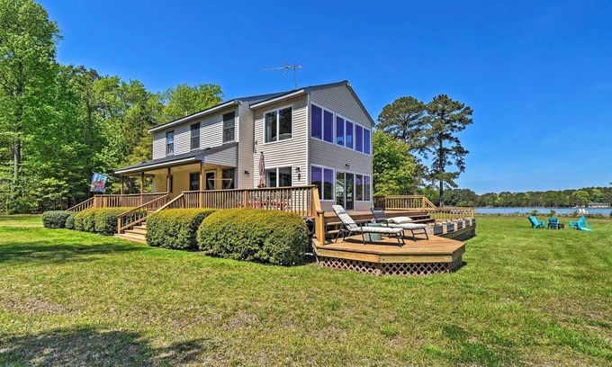 Savor Port Haywood paradise at this spacious 3-bedroom, 2-bathroom vacation rental! Resting on the shore of Winter Harbor Haven, this home invites you to take to the water daily as you paddle out in the provided kayaks and canoe, or simply grill out on your wraparound deck. Head out from your waterfront oasis to fuel your wild side at Busch Gardens Williamsburg, or enjoy a day on Bethel Beach! After a day of exploring, relax with a nightcap on your deck or game of croquet in your yard.