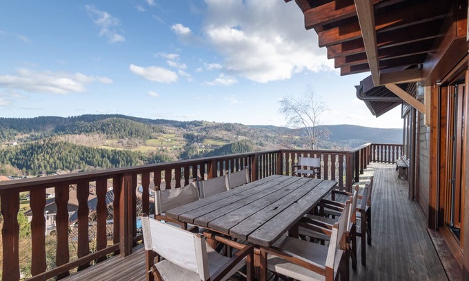 Majestic chalet with top-of-the-range services and harmonious decor. The mountain setting and the view overlooking the Hautes-Vosges will charm your stay and your comfort.