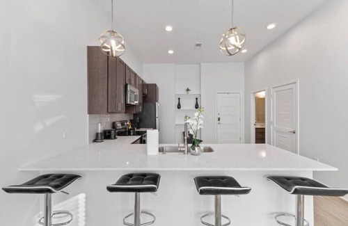 Super clean. Suitable for business travelers and remote workers workspace, chairs, and super fast Wi-Fi. A fully stocked kitchen or enjoy a long list of local places to eat out or Room Service delivered to your front door. Great Space for traveling Consultants and perfect for longer stay.