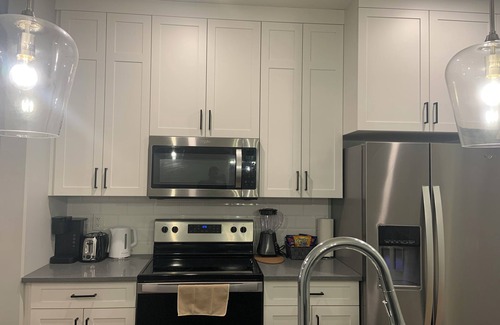 This home sleeps 8 guests with 1 king bed, 2 Queen size beds and a Pull out Sofa in the living room. The home can also accommodate up to 8 guests. It is equipped with Master and guest bathrooms (2.5 Bathrooms) . Fully stocked kitchen with stainless steel appliances. Great dining and living room area, Balcony patio, A crib upon request, parking pad for two vehicles, In suite laundry, dish washer, etc.
