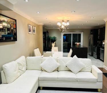 Luxurious 3BR House with Patio is located in Toronto, just 4.7 miles from Ontario Science Centre and 5.9 miles from The Distillery District. This villa offers free private parking and free Wifi. Hockey Hall of Fame is 6.7 miles away and Ryerson University is 6.9 miles from the villa. The air-conditioned villa consists of 3 bedrooms, a fully equipped kitchen, and 2 bathrooms. A flat-screen TV is featured. The accommodation is non-smoking. Yonge-Dundas Square is 7 miles from the villa, while Toronto Eaton Center is 7 miles away. The nearest airport is Billy Bishop Toronto City Airport, 8.7 miles from Luxurious 3BR House with Patio.