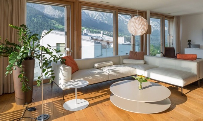 Luxurious 4.5 apartment 240sqm at the residential building of The Mountain Suites, in walking distance from the cable car station of Flims. Available for a max. of 6 adult + 2 children.