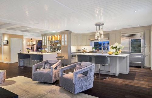 - FIRST FLOOR COMPLETLEY OPEN PLAN WITH 2 LIVING AREAS, EXTENDED KITCHEN WITH 60" WOLF STOVE AND LARGE ISLAND, SEPARATE BAR WITH COUNTER SEATING, FORMAL DINING AREA AS WELL AS BREAKFAST/GAMES NOOK. LARGE DECK WITH OUTDOOR LIVING AREA AND DINING AREA.