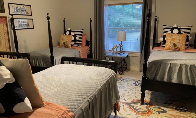 Our home features 5 bedrooms (2 masters) 3 full bathrooms, 2 large living areas, (including a separate private media room) a gourmet kitchen. 1 king-bed 2 queen-beds and 1 full-featuring crisp fresh linens.