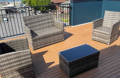 Step onto the rooftop deck, where breathtaking, unobstructed views of Puget Sound and the Olympic Mountains set the scene for morning coffee or evening gatherings.