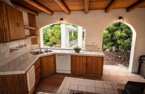 Our multi-level completely detached guest house is at the back of our property away from the street. It has private patios and its own private entrance from the parking spot on the drive way. The house is perfect for a couple but can sleep up to two more on the full size sofa bed in the office/study/entertainment room. Redlands Hacienda was remodeled in 2019 with a new indoor kitchen (built to replace the outdoor covered kitchen) and new bathrooms. The front yard north of the hacienda is for the private use of our guests. It is perfect for meandering along the path in the "redwood forest". Our unit is fully stocked with amenities and includes Wifi, central air and heat, cable and TVs. There is a smart TV in the Office/Study and one in the family room. They are equipped with a Roku streaming device which can be used with YOUR OWN Netflix, Amazon Prime Video, or cable streaming service (there is no cable service in the guest house). The LG washer and dryer are in the master suite bathroom. There are two fire places for our guest's enjoyment, one in the extra living room/office room and another on the patio off the kitchen/covered BBQ area.