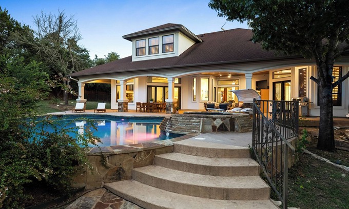 Nestled in the picturesque Hudson Bend area of Austin, our luxurious estate is the ultimate retreat for large groups, family reunions, corporate getaways, or special occasions. Designed with comfort and elegance in mind, this expansive property offers a serene escape with top-notch amenities and breathtaking surroundings, comfortably accommodating up to 18 guests.