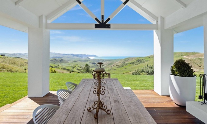 Located a short drive from both Waimarama and Ocean beach and 15 minutes from Havelock Village this home offers the best of accessibility, peace, and privacy! With unencumbered views to Ocean beach and rolling hillsides, this immaculate 4 bedroom + office (convertible to small bedroom) home is bright, airy and big enough for the whole family! Flooded with gorgeous natural light, all main areas open with bi-fold doors to the covered deck featuring an outdoor fireplace, perfect for entertaining or hosting al fresco family dinners. The glistening naked pool is the perfect way to cool off during the Hawke's Bay summer days while the hot tub offers relaxation on the cooler evenings while you enjoy the incredible starscape from the peace and privacy of this well positioned, private section.