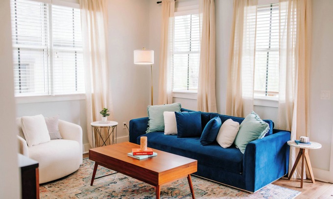 Just like the bedrooms, the bathroom is designed for ultimate comfort and relaxation. The bathroom features a luxe walk-in shower. The bathroom is stocked with spa quality Public Goods amenities and plush towels for your convenience and comfort.