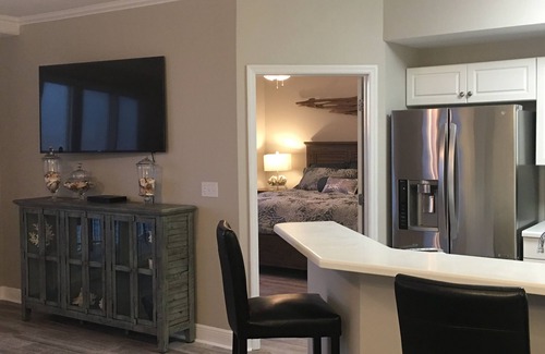 The SECOND bedroom has a king bed with a flat screen television.