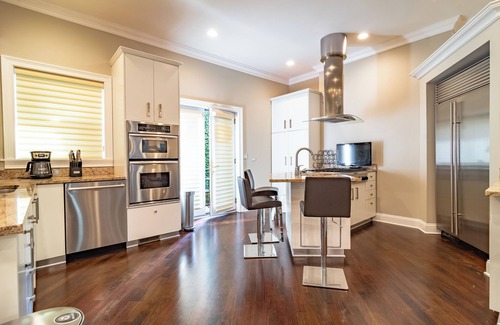 • Fully Equipped Gourmet Kitchen — With Stainless Steel Appliances & Coffee/Tea Bar