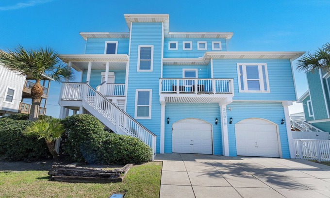 Welcome to beachfront paradise with amazing views! Located at one of the most quiet spot at the west end of Galveston beach, enjoy your privacy and relax with family without worrying about traffic on the sand as vehicles are not allowed most of the year. Fully remodeled with wooden floor and new bathrooms, this spacious high ceiling house has 3 stories with balconies. Enjoy sunrise/moonrise with friends from first floor balcony or privately from the second floor balcony. Perfect all year long!