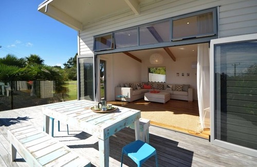 Villa Reve is a purpose built luxury holiday home. Set in park like grounds this gorgeous home offers every luxury you could want for but in a wonderfully relaxed atmosphere. Wake up to the sounds of tuis, doves, quail and take in the beautiful garden views. The bedroom with large King bed, luxurious linen and vast en-suite opens onto private deck. The galley kitchen offers superb cooking facilities. The fireplace in the outdoor dining area provides alternative cooking options as does the gas BBQ. This area is fenced to keep the wind out and for ultimate privacy.