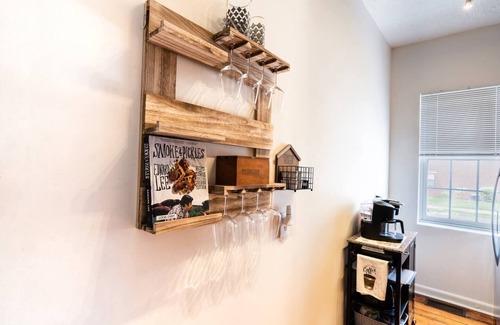 After a day of exploring vibrant Louisville, relax in this Art Deco inspired home with vaulted ceilings, original hardwoods and trim, and abundant natural light. Lounge among sequins, geometric prints, and Tiffany style lamps, an homage to Louisville's part in Roaring '20s history and in The Great Gatsby.
