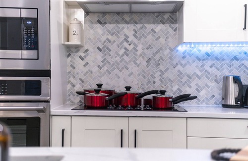 Overflowing with stylish details and offering a well-designed layout with 19 and 9 ft ceiling, open concept kitchen and dining with a huge island ideal for longer stays.