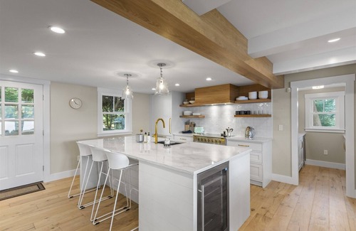 Experience the perfect blend of comfort, elegance, and natural beauty at this newly renovated lakefront retreat on Megunticook Lake. Located at 191 Beaucaire Avenue in Camden, Maine, this stunning home offers everything you need for a relaxing and luxurious stay—complete with a charming guest house above the garage.