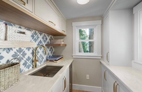 The main house offers spacious, light-filled living areas designed to bring the outdoors in, with large windows framing breathtaking lake views. The gourmet kitchen, equipped with high-end appliances, makes cooking a pleasure, whether you’re preparing a family dinner or hosting a gathering. Each bedroom is luxuriously appointed, with the master suite featuring a spa-like ensuite bath and private access to the outdoors. In addition to the main home, the property includes a guest house located above the garage. This separate space offers privacy and comfort for additional guests, complete with its own cozy living area, kitchenette, and bunk beds.