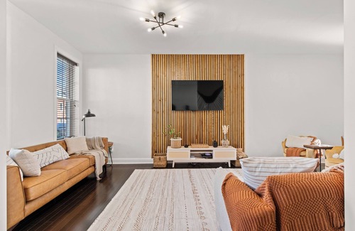 • Spacious living room with comfy seating + entertainment options [TV with streaming services, games, books, + more]