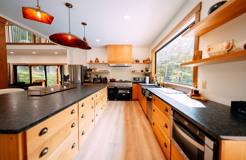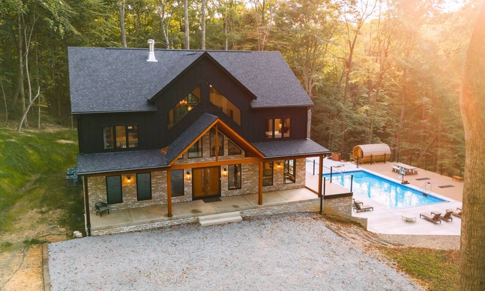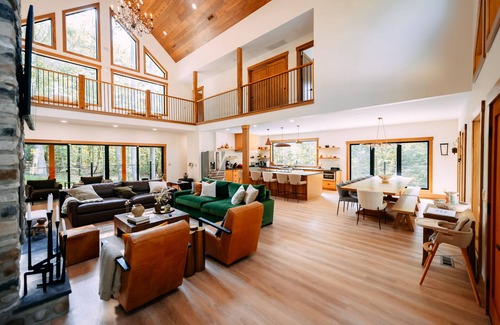 Eagle Star Lodge 2 is perfect for large families, groups, small weddings and business retreats. It sleeps 20+ guests. Enjoy modern and luxurious amenities without compromising the rustic vibes and breathtaking forest views. Enjoy 20 foot vaulted living room ceiling, full kitchen with luxury appliances, ample natural light, a large game room, hot tub, pool, and sauna pod. Pool open from May 1st to October 1st. 7 min drive from all the conveniences of town. Many outdoor activities located nearby.