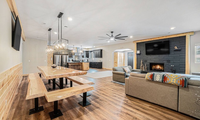 Welcome to Timbertown Lodge and Lanes, the newest addition to Lewiston's city center! This stunning 12,000 square foot, 4-bedroom, 6.5-bath Lodge is the perfect retreat for those who love the outdoors and entertainment. With the ability to sleep 34 guests, this new build features an attached 4-lane bowling alley,of which all will be available for use, pickleball, and tennis courts across the street, providing endless entertainment options at your fingertips. With newly added dart boards in darts area and pool table.