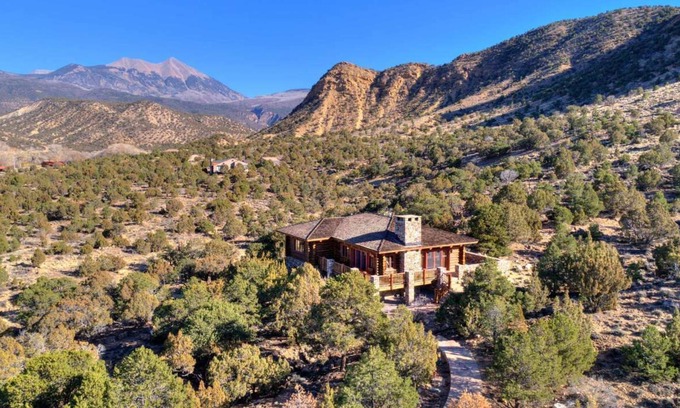 This gorgeous log and stone home sits on an expansive hillside overlooking the Pack Creek Ranch. Enjoy views of the Moab Rim and 12,000-foot peaks of the La Sal Mountains. Native pinyon pines, juniper, and sage envelop the property, flooding the home with the aroma of the southwestern desert, while higher elevation temperatures create a climate 10-20 degrees colder than Moab - altogether enhancing your resort experience at this elegant and comfortable retreat.