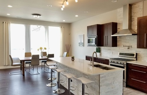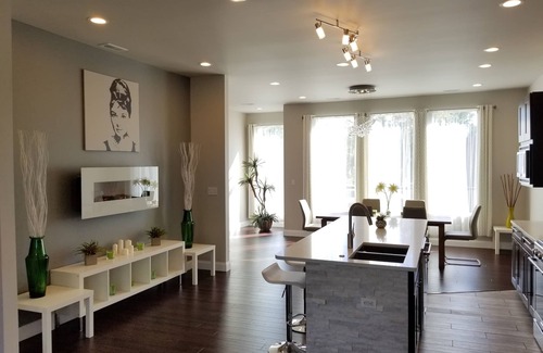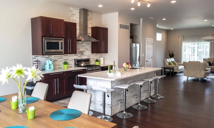 With over 3,160 sq.ft my home is perfect for big families and business groups. With sleeping accommodations for up to 12, it has everything you need to have the most enjoyable stay. Fully furnished and well-equipped with attention to details that travelers need. Exclusive contemporary design with many modern, high-end finishes throughout. Dining room and living room combined in one open space - an ideal set-up for spending time with family and friends.
