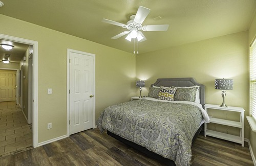 Newly Remodeled & Furnished Spacious Home in a Wonderful Neighborhood 2 Blocks from the Neighborhood Park! 4 Private Bedrooms w/Comfy Pillow-Top Mattresses, Enormous Master Suite w/Walk-in Closet, Huge Living Room w/Desk, Lg Fully-Equipped Kitchen w/Extensive Granite Countertops, Dining Area w/Breakfast Bar for Additional Seating, Solid Surface Flooring throughout (no carpet), Covered Patio w/Dining Set & Gas Grill, Fully-Fenced Private Backyard, (2) Smart TV's w/Cable & Netflix Capability, Free Cox High Speed Internet.