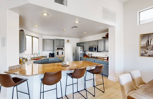 Modern desert luxury will materialize before your very eyes at this gorgeous Marana home! A focal point of the property, the enclosed backyard boasts a turquoise pool, hot tub, grill, and sun-soaked patio. Some of your favorite moments will be spent cooling off on the water loungers and dining alfresco under the warm Arizona sunshine. When you can pull yourself away from the private oasis that is the backyard, check out nearby hotspots like the International Wildlife Museum, Tucson Mountain Park, Rialto Theatre, Saguaro National Park, and Old Tucson. Rest assured that your every craving will be indulged as the area lacks no variety of delicious eateries and vibrant shopping opportunities.