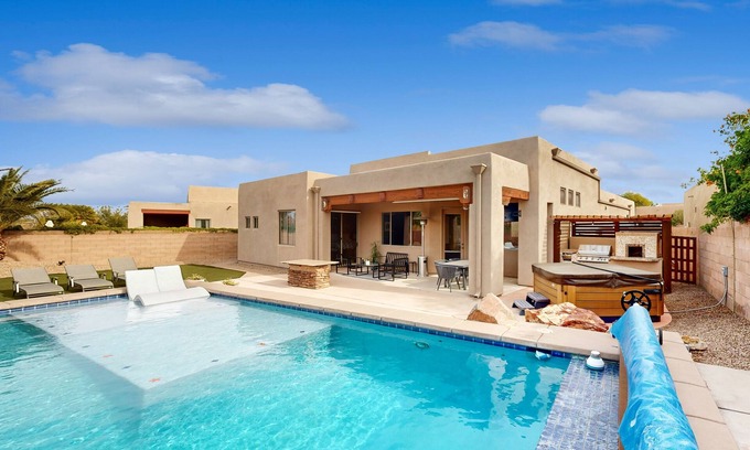 Luxurious mountain view home with gorgeous pool, hot tub, grill, patio, & AC | House in Marana