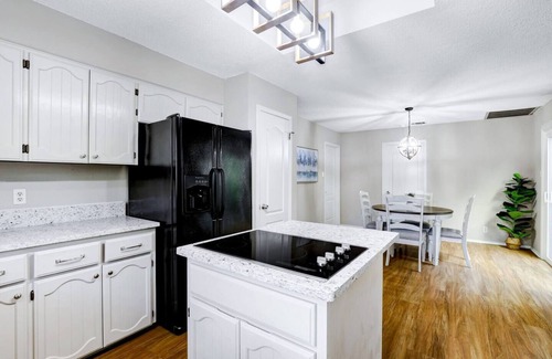 As you step inside, you'll be greeted by bright, airy living spaces adorned with tasteful decor and modern furnishings. After a day of sightseeing, kick back and relax in the plush living room, enjoying your favorite shows on the large flat-screen TV. The gourmet kitchen is a chef's dream, fully equipped with top-of-the-line stainless steel appliances and ample counter space for whipping up delectable meals. Gather around the dining table for lively dinner conversations, or take the party outside to the private backyard oasis. Three tastefully decorated bedrooms ensure a peaceful slumber for up to 6 guests, with the option to accommodate 2 more using the folding beds.