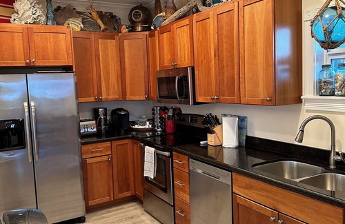 We provide bikes, kayaks, a corn hole game, folding beach chairs, a beach umbrella, beach toys and towels, bocce ball, and a cooler for your enjoyment. We are always adding extra "toys" and oftentimes have a clear see-through kayak and stand up paddle boards available as well. Relax on our hammock or on our swing overlooking the beach. The bikes are available for you to enjoy a leisurely bike ride down the scenic tree lined bike path, accessible directly across the street from Sunrise Beach, which traverses Cudjoe Key and continues all the way to Key West. Cudjoe Bay is the perfect calm place to kayak and enjoy the clear water. There is something for those who want to relax and enjoy the views and as well as for those who wish to explore all the keys have to offer!