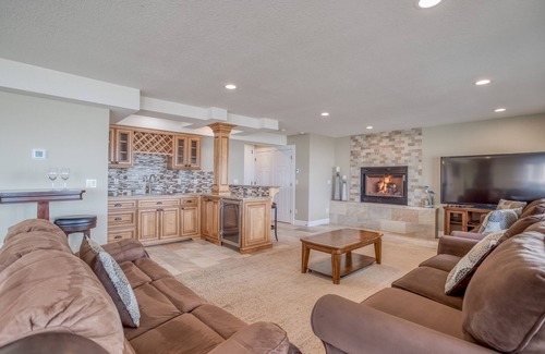 If that weren’t enough, a third floor centered around recreation blends entertaining and relaxation with a full wet bar complete with a wine fridge, a third gas fireplace, and a wall-mounted television. There are also comfortable suede and crushed velvet sofas, two of which are convertible queen sleeper sofas for another sleeping area. Mix cocktails for your friends or enjoy a bottle of Pinot from the local ‘Depoe Bay Winery’. Another full bath makes it easy for the kids to clean up after playing on the beach, or for you to rinse off after a dip in the hot tub, or a session in your own private sauna and steam room. Play a round of pool with your friends or while away the evening roasting s’ mores around the home’s exterior fire pit.