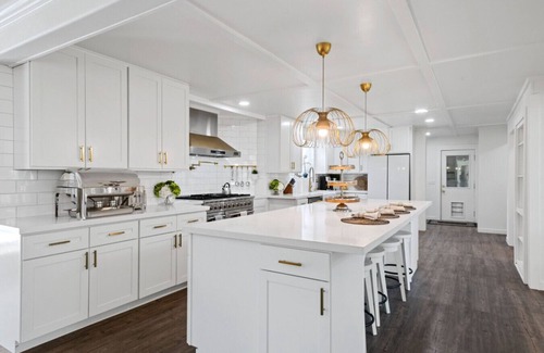 9 Bedrooms and 6.5 Baths: Combination of King and Queen beds, accommodating 30+ guests.